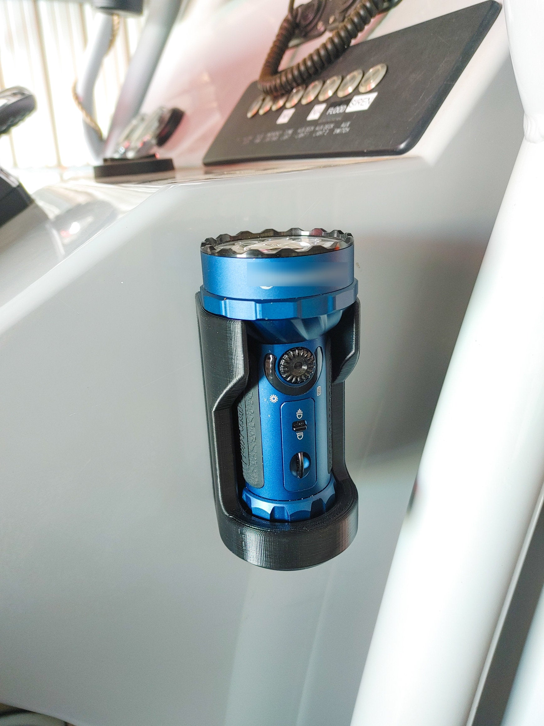 This mountable charging station and holder is designed to fit the Olight Marauder Mini Flashlight. The charging station is designed to mount in your jeep, boat or police car. They accept the charger that comes with the Marauder Mini flashlight.